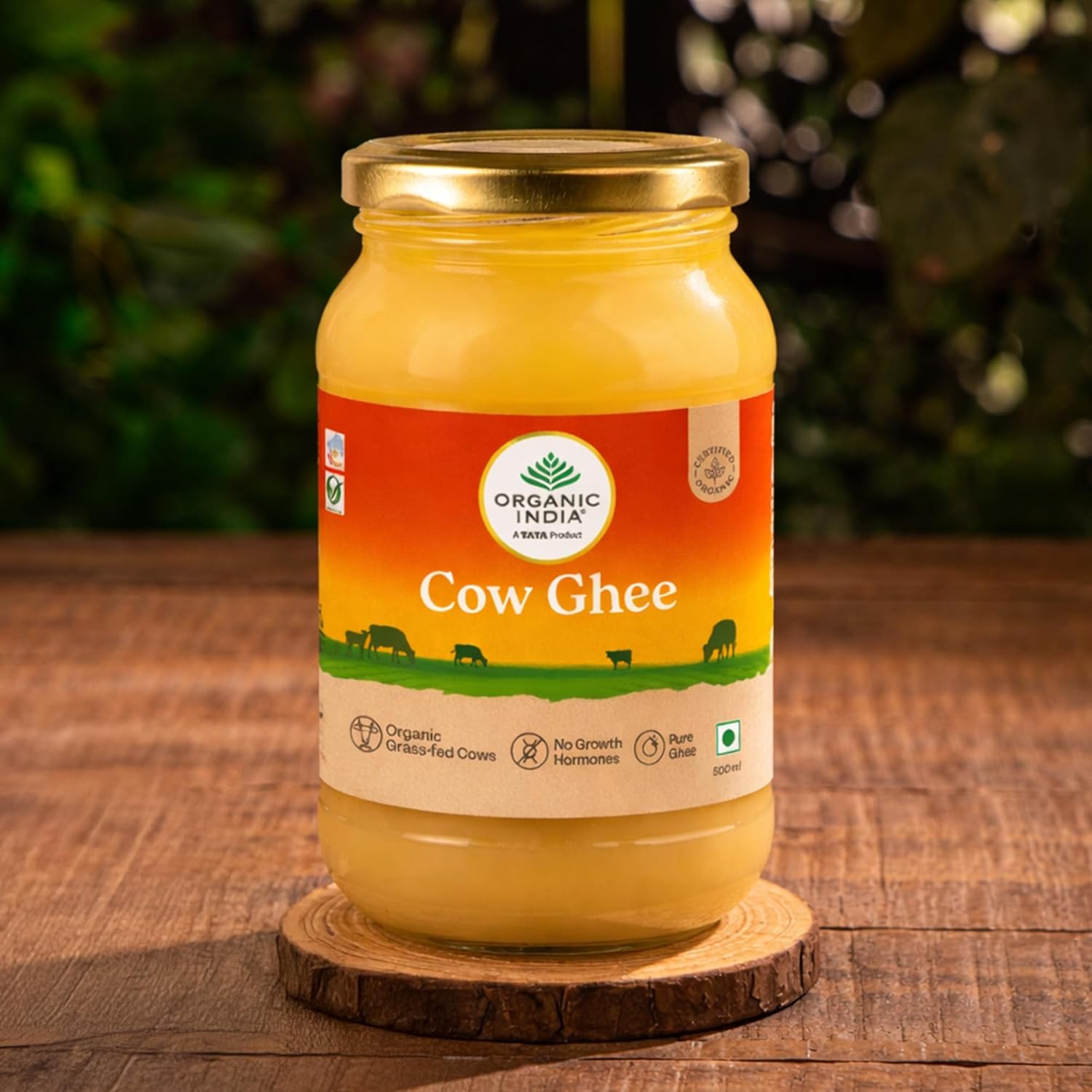 A TATA Product – Organic India Pure Cow Ghee, 500ml, Lab Tested on 600+ Parameters, Certified Organic, Glass Bottle, Sourced from Organically Fed Cows, Authentic Taste, Rich in Healthy Fat