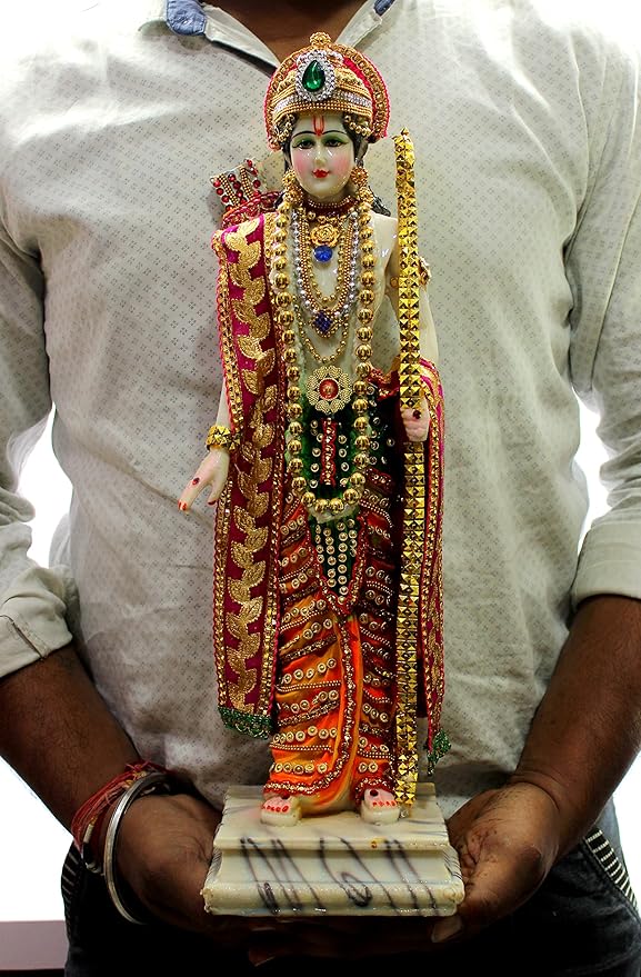 - Dimensions: L x W x H – Ram ji: 5 x 5 x 18 Inches, Laxman ji: 5 x 5 x 17 Inches, Sita ji: 5 x 5 x 16.5 Inches, Hanuman Ji: 5.25 x 4 x 8.5 Inches. Made of Resin