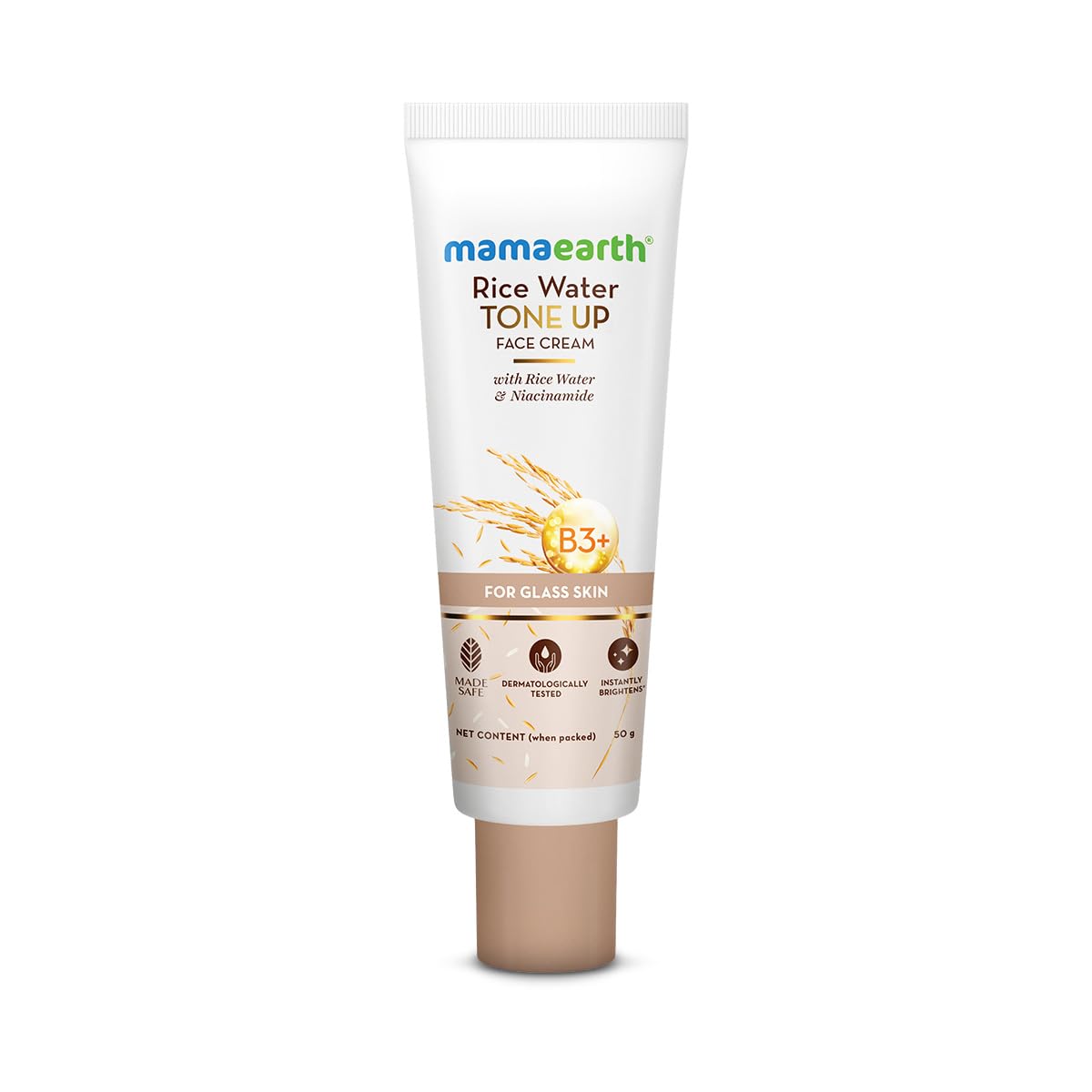 Mamaearth Rice Water Tone Up Face Cream with Rice Water & Niacinamide for Glass Skin 50g | Instantly Brightens | Even Skin Tone | Adds Glow | All Skin Types | Korean Rice Tone Up