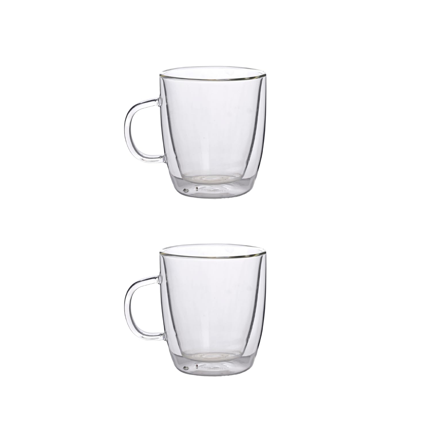 Nestasia Set of 2 Double-Walled Borosilicate Glass Mugs| 280ml, Microwave & Dishwasher Safe, Ergonomic Handle, Crystal-Clear Design | Ideal for Tea, Coffee quantity