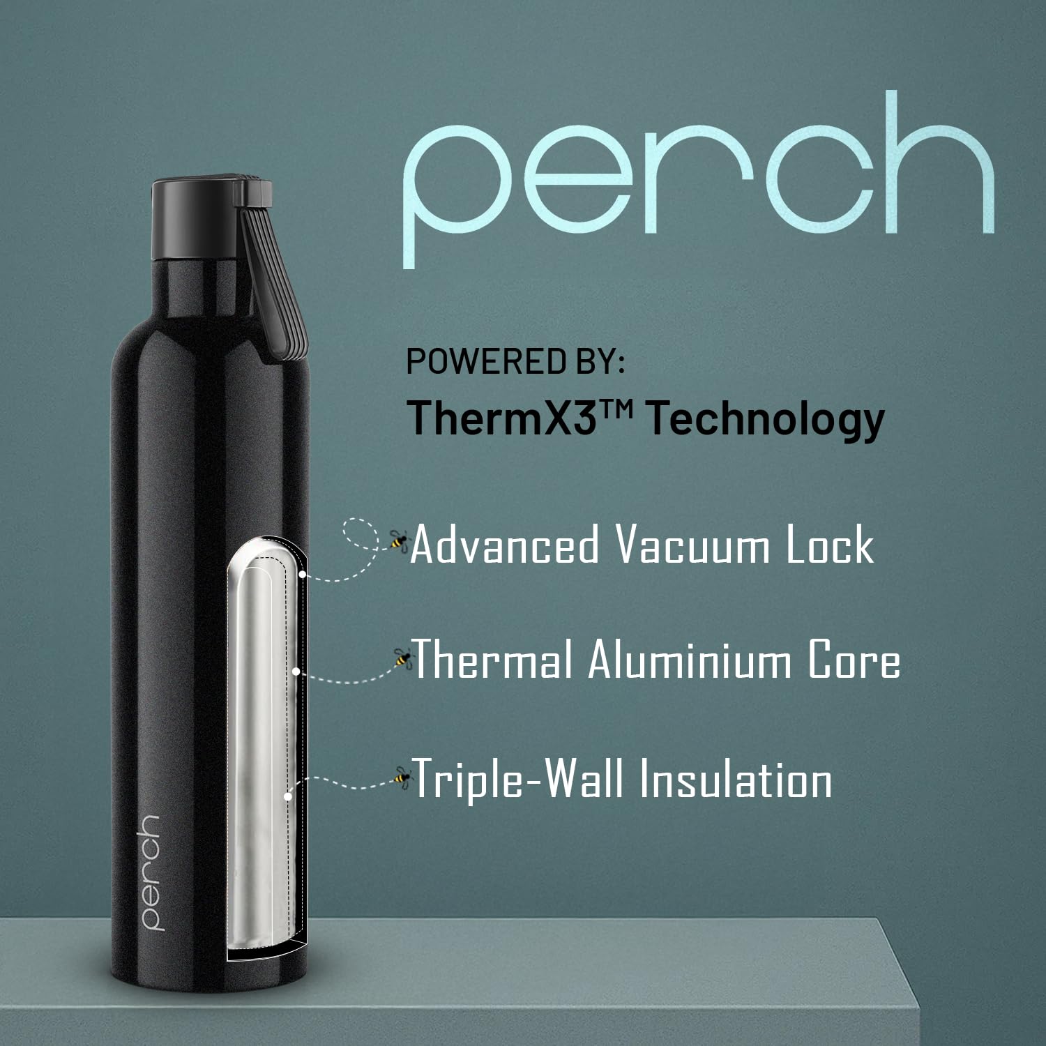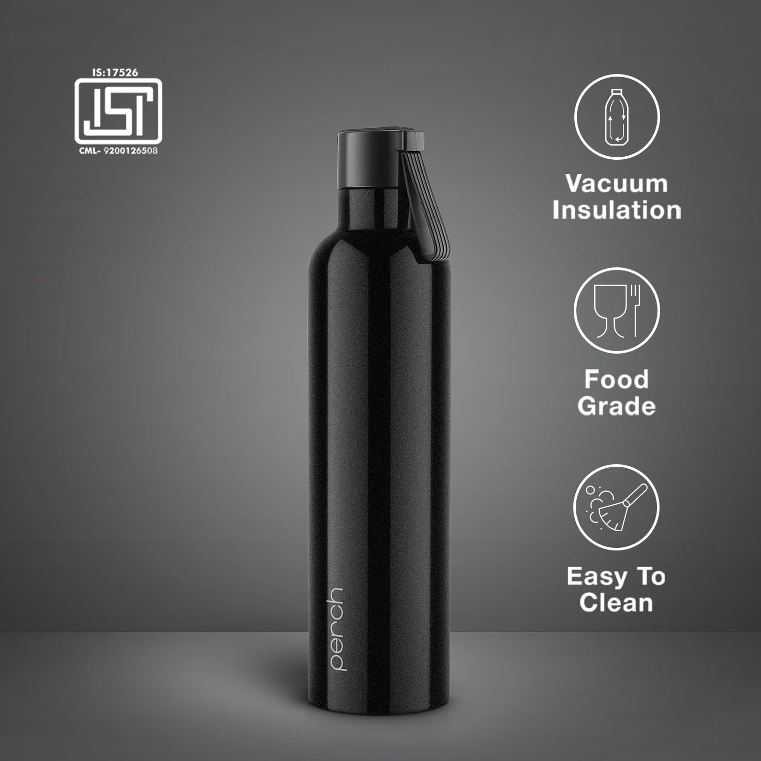 Perch Oasis Pro Insulated Steel Water Bottle | ISI Certified Hot & Cold Flask – 760ml | BPA-Free, Leakproof, Travel-Friendly Bottle for Office, Gym & Home (Knight Black)
